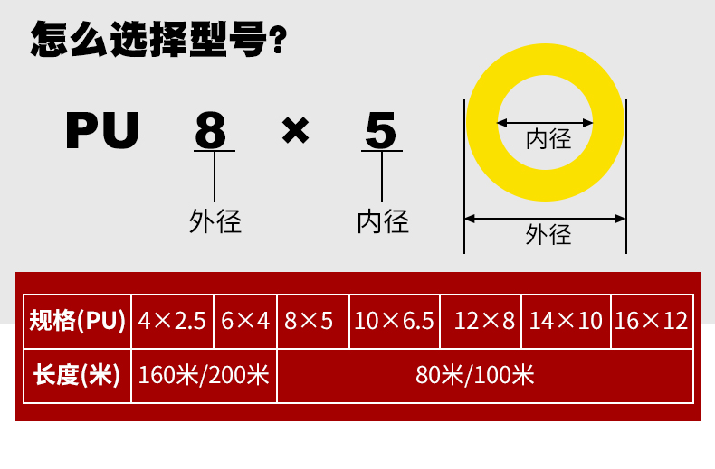 PU气管 PU4*2.5,PU6*4,PU8*5,PU10*6.5,PU12*8,PU14*10,PU16*12